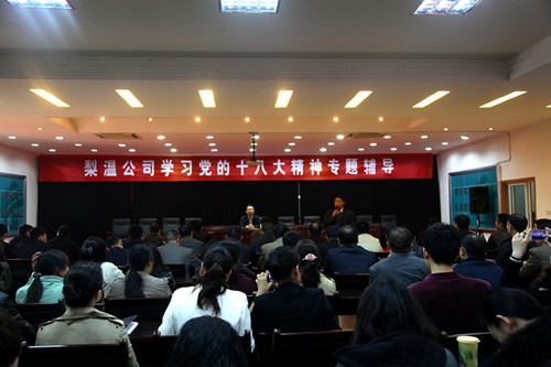 梨温公司党委要求,将以专题辅导讲座精神为指导,推动广大党员干部职工对十八大学习的深入和贯彻的实践。(梅春华 胡丹)