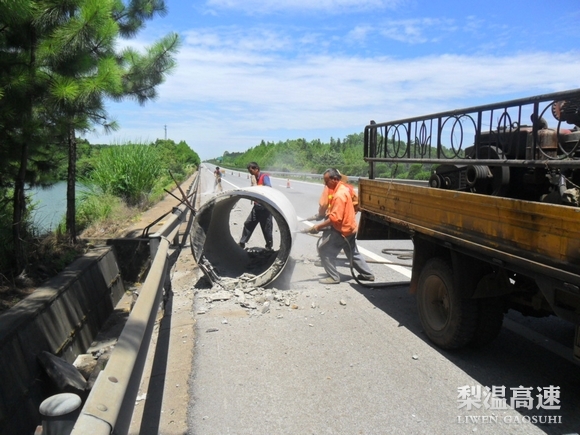 高速公路上掉下涵管 梨温公司养护人员及时清除