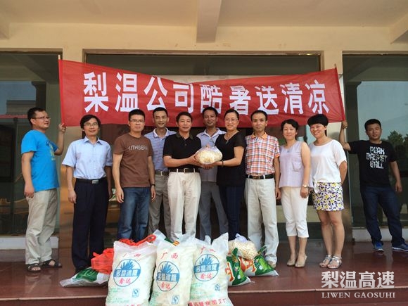进入大伏天以来,高温天气不断,梨温公司领导层心系户外高温作业职工,7月22日,受党委委托,党委副书记周洪达带着工会采购的2000余斤绿豆、1000余斤冰糖、200余斤白莲及正气水、风油精等防暑降温品,马不停蹄送往梨温高速沿线各处站、维修队,为坚守岗位保障高速公路畅通的一线职工,带来了组织的关怀和夏日里丝丝的凉意。