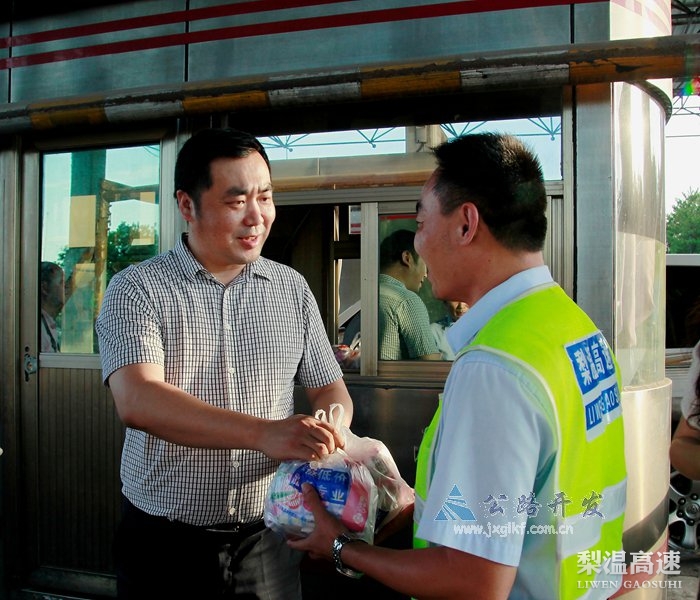 7月流火、天气炎热,陈立新一行冒着炎炎烈日,沿梨温自西往东慰问了奋战在梨温高速一线的收费、养护及路面维修整治施工人员,先后慰问了梨温高速路面维修整治项目办、养护公司及上饶东、上饶西、玉山站、经开区站工作人员。每到一处,陈立新都与工作人员亲切握手,嘘寒问暖,并代表总公司对基层员工长年奋战在一线付出的辛勤劳动和汗水表示感谢,亲手将防暑降温用品和慰问金送到员工手中,并叮嘱他们在各自工作岗位上要注意安全,切实防范酷暑。