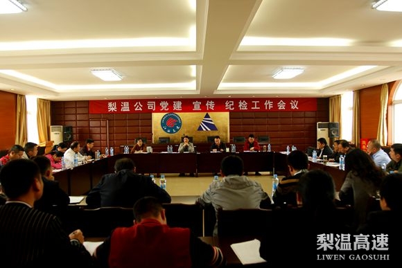 4月11日,梨温公司党委召开党建、宣传、纪检工作会议,公司党委书记周洪达,副书记、纪委书记雷霆出席,纪委副书记梅水平主持会议。党办主任,各支部负责人、纪检员、各分管思想工作站长、交通维修队负责人以及党办、纪检监察室,各支部党务、宣传、纪检干事等40余人参加会议。
