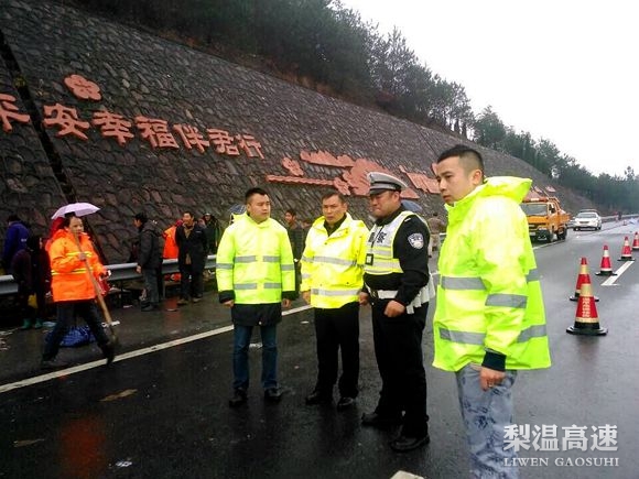 正值低温雨雪、保畅通重要节点。接到险情后,梨温公司迅速启动交通事故应急处置预案。正在沿线指导抗冰雪工作的公司总经理潘皓第一时间赶往事故现场,指导救援工作。一是联勤联动,迅速与高速交警、路政、施救等单位取得联系,密切配合,有序安全疏导交通,快速处理事故车辆;二是紧急调配机械设备和抢修人员,及时清理路面垃圾,修复受损交通设施;三是耐心劝阻周边村民,不要上高速哄抢车上物品,防止发生人身伤害交通事故;四是做好文明服务,及时发布路况信息,附近各收费站开足车道,分流车辆,疏导交通。对滞留在高速路上的车辆,提供热开水、方便面等便民服务,让司乘人员感受到寒冬中暖意。(何爱鹏、何建强)