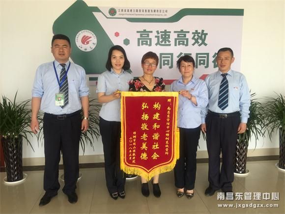 在春暖华开、草长莺飞的4月天首个工作日,南昌南管理中心樟树东收费所迎来了一位“特殊”的客人——樟树市阁山镇敬老院张院长,此次张院长是专程送来一面锦旗,代表孤寡老人们,对樟树东收费所长期不懈的关爱行动表示感谢。