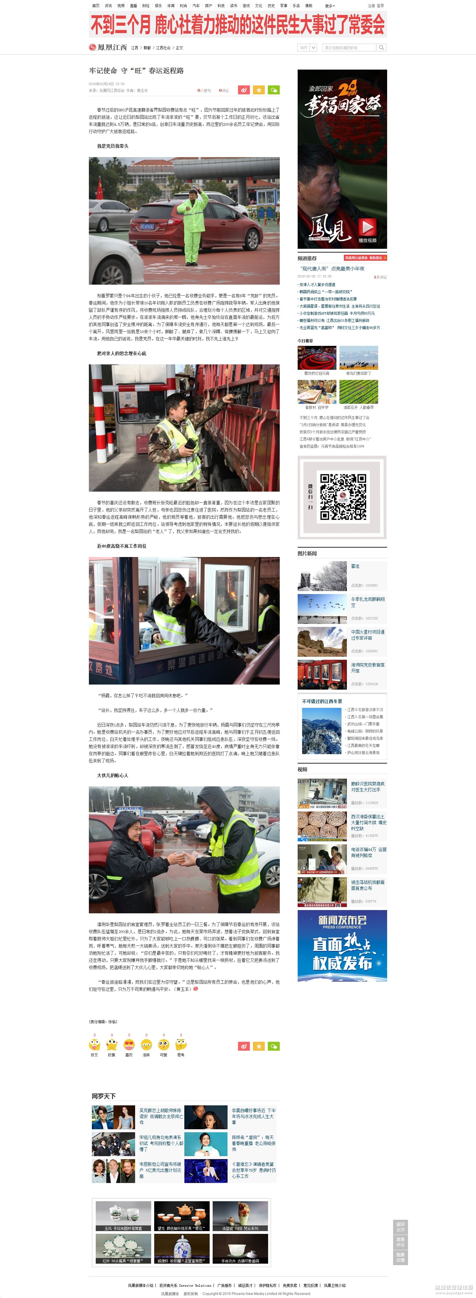 凤凰网:牢记使命 守“旺”春运返程路//jx.ifeng.com/a/20180224/6391561_0.shtml