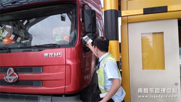 为配合江西省高速公路执行入口称重检测规定,拒绝违法超限车辆驶入高速公路,7月12日上午,南昌南管理中心广丰收费站开展发放“致货运企业及货车司机的一封信”宣传页活动。