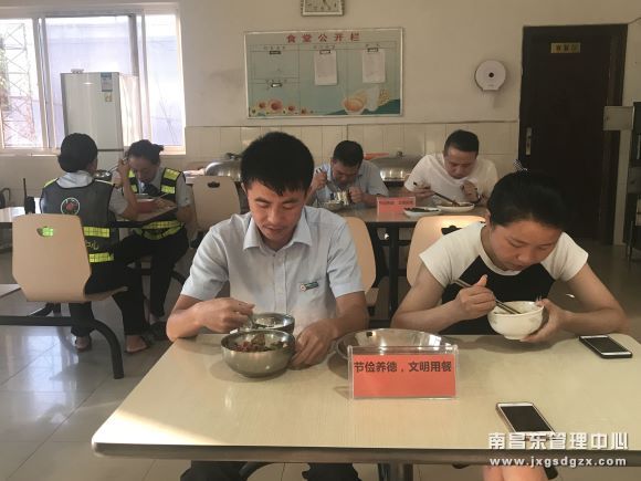 该站还在食堂张贴悬挂 “节约粮食、光盘行动”主题的宣传画,在餐桌上放置写有“节俭养德、文明用餐”的标牌,引导全体职工职工文明用餐、拒绝浪费。(钟平香)