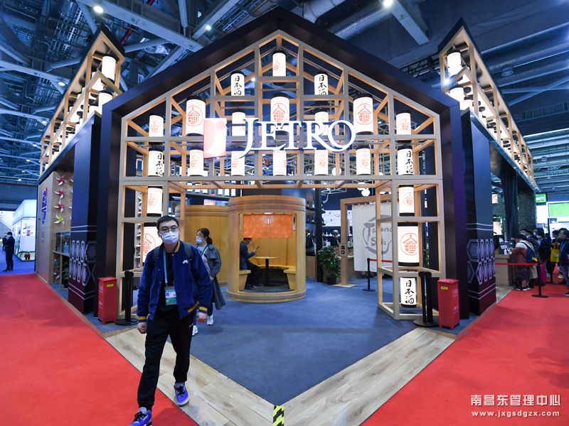 11月10日,观众从第三届进博会食品及农产品展区日本贸易振兴机构展台走出。新华社记者 陈晔华 摄