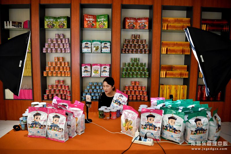 在陕西省商洛市丹凤县一家食品公司,主播在进行网络直播(7月20日摄)。新华社记者 刘潇 摄