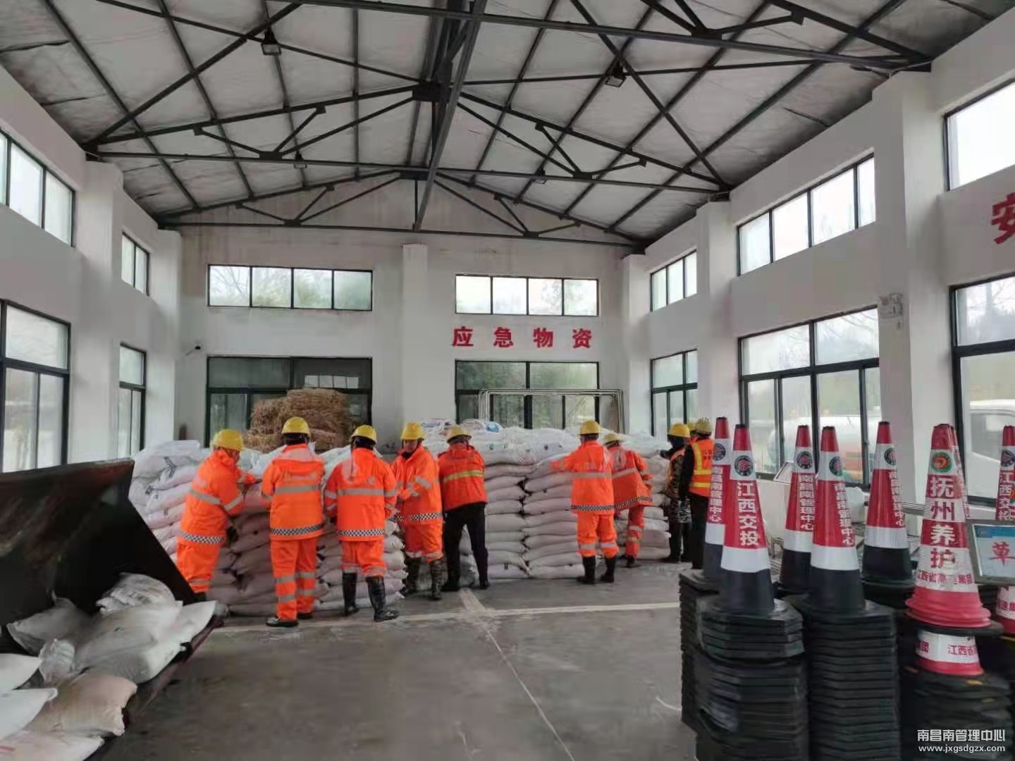 为积极应对低温冰冻雨雪天气,中心各单位提前梳理仓库库存,对不足或使用量大的物资进行再核查、再补充。二是后勤保障物资备好备足,采购就绪,使在一线抗冰保畅人员即使在风雪中也能感受到温暖。目前,中心养护所储备融雪剂188.9吨,标志牌371块,安全锥8324个。