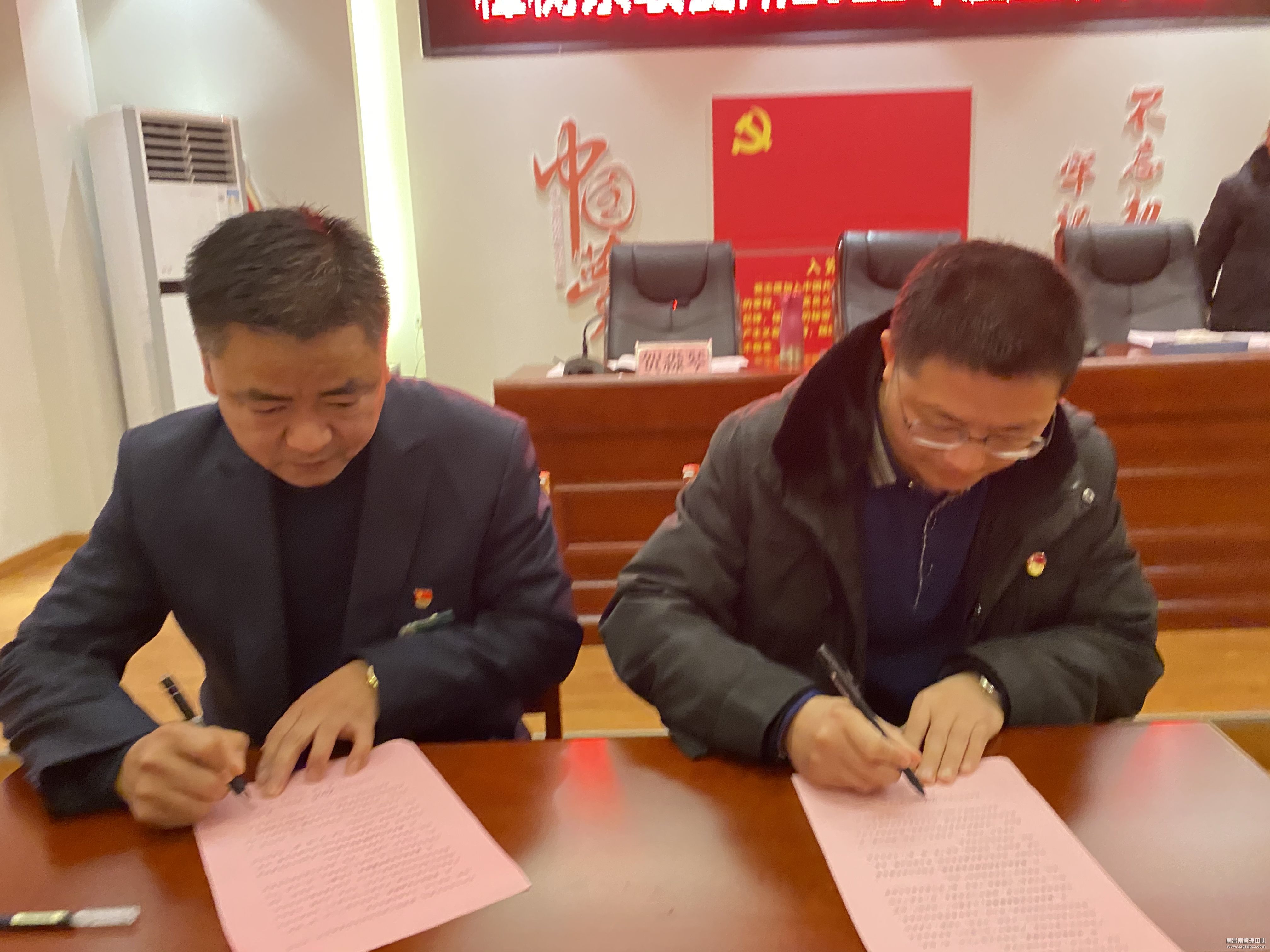 会上,党支部书记曹先星李正光同志与基层单位代表双金收费站负责人签订年度《党风廉政建设责任状》。行政负责人李正光同志与基层单位代表新干北收费站负责人签订年度《安全生产责任状》。(杜晶)