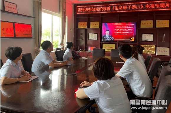6月14日,南昌南管理中心进贤收费站组织干部职工观看安全生产专题片《生命重于泰山》。