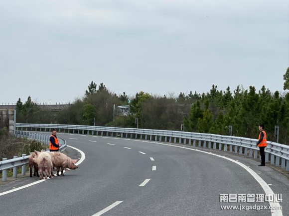 3月26日下午,一辆赣C牌照的货车在东昌高速K90+800左幅处突然发生侧翻,车上装载的十余头生猪从笼里逃出,在高速路上四处撒欢逃窜,另有三头猪失散走到了转昌宁匝道上。幸亏南昌南管理中心东乡养所养护人员及时赶到,帮助车主将生猪全部装回转运车辆。