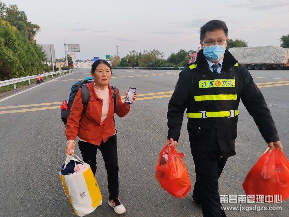 得知事情的原委后,他立即带领王女士,帮助她提着行李前往“悦畅服务站”休息等车,为其提供开水等暖心服务,安慰她耐心等候,并向她讲解高速公路关于与收费无关的闲杂人员不得在收费广场附近逗留等相关政策。
