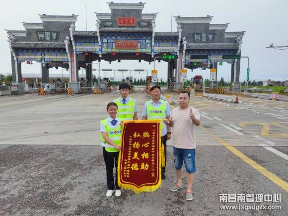 6月6日上午11时,新干北收费站收到了一份珍贵的礼物,一面大货车司机专程送来的“热心相助,弘扬美德”的锦旗。