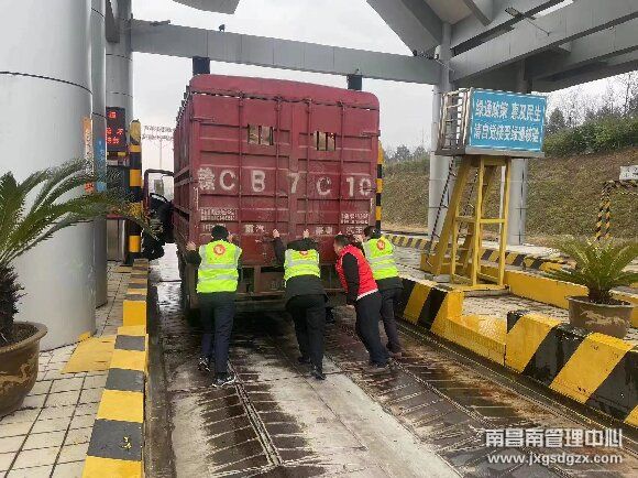 2月25日上午,一辆蓝牌小货车刚驶入南昌南管理中心进贤收费站出口104车道就停下来不动了,坐道收费员看到后立刻通知收费班长前去询问。
