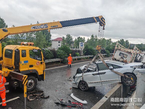 轿运车雨天事故,南昌南救援队紧急出动