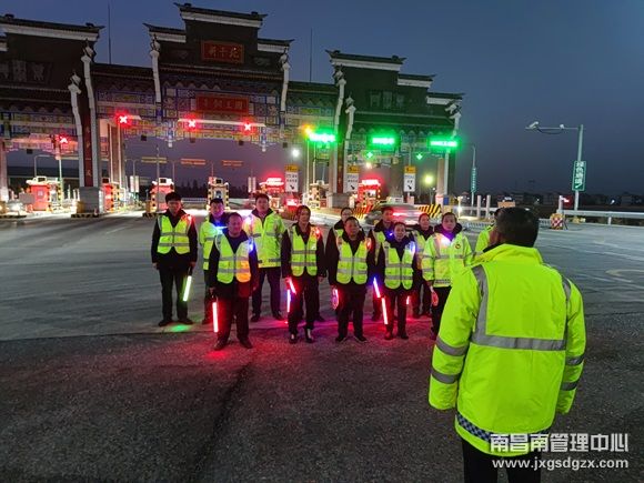 近日,南昌南管理中心新干北收费站为提升工作人员夜间应急处置能力,保障春运期间车辆高效通行,检验和提高应急预案在夜晚的实用性和可操作性,组织开展了夜间全员车道应急保畅演练活动。